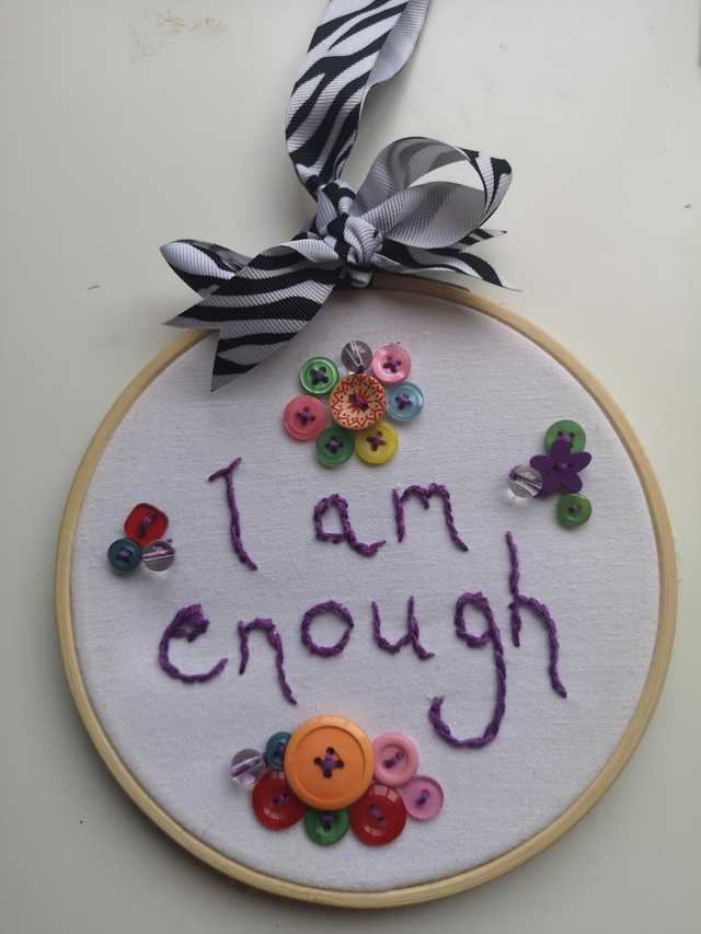 Designed to be beginner-friendly and soothing, this mindful project guides you to stitch the gentle affirmation “I am enough.”